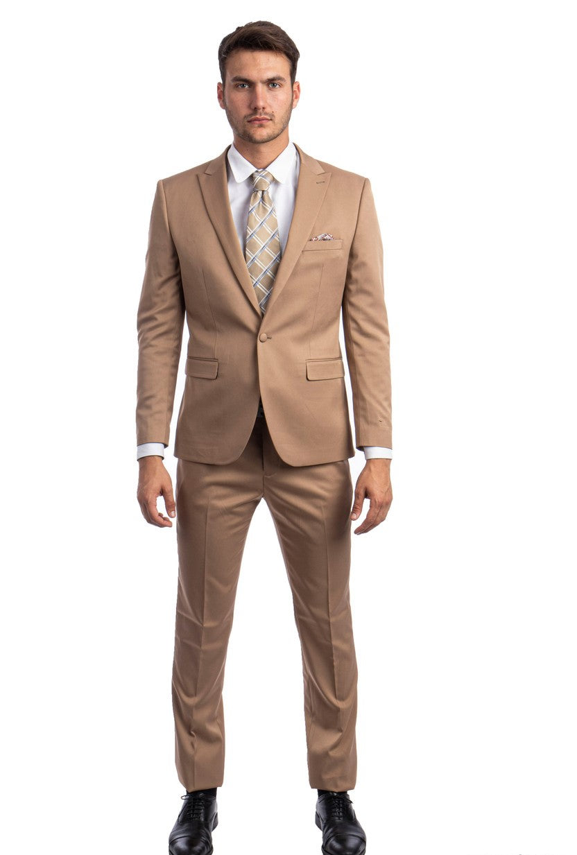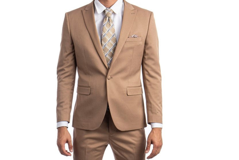 The Metropolis Modern Dark Taupe Two-Piece Suit is the epitome of understated elegance. Crafted in a skinny fit, this suit highlights a structured silhouette with a two-button front closure and a notched lapel. Its neutral taupe shade makes it versatile for various occasions, ensuring a polished look every time.