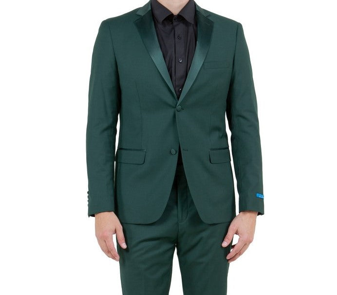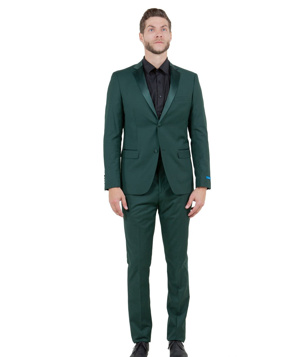 Obsidian Collection: Green Two-Piece Tuxedo with Satin Side Stripe Pants – Hybrid Fit