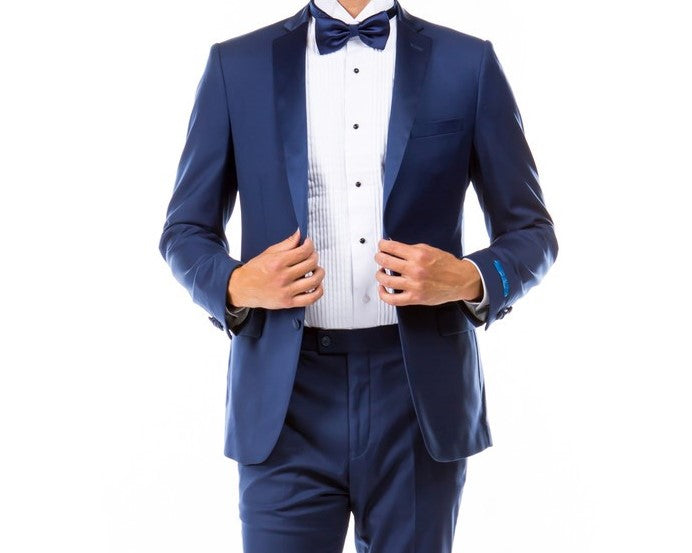 Obsidian Collection: Indigo Two-Piece Tuxedo with Satin Side Stripe Pants – Hybrid Fit