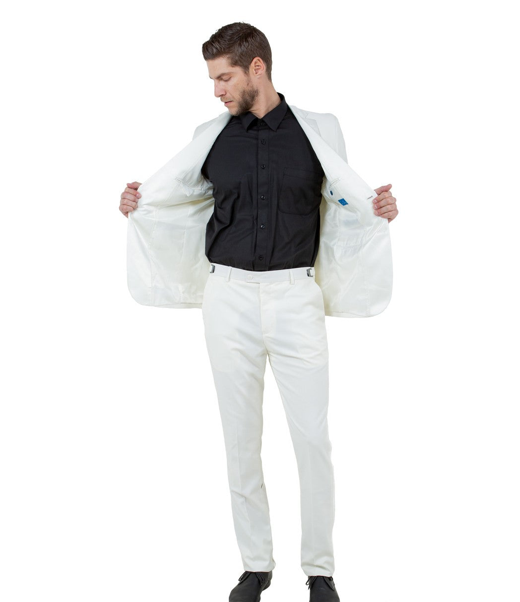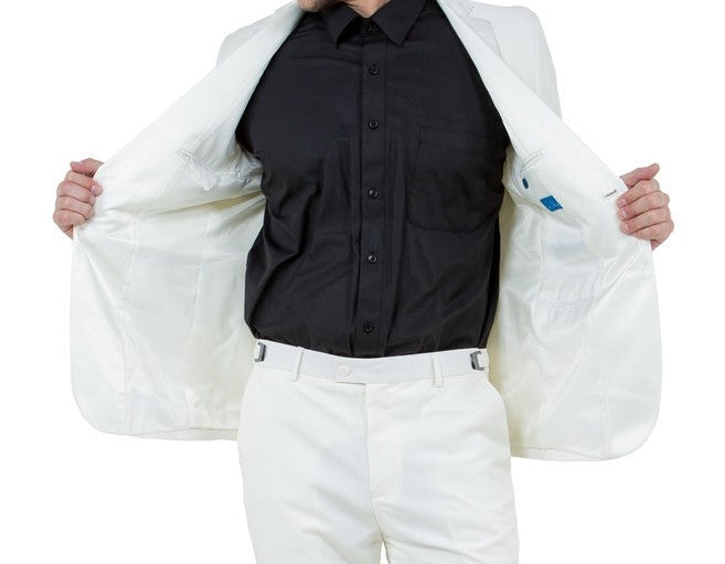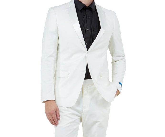 Obsidian Collection: Ivory Two-Piece Tuxedo with Satin Side Stripe Pants – Hybrid Fit