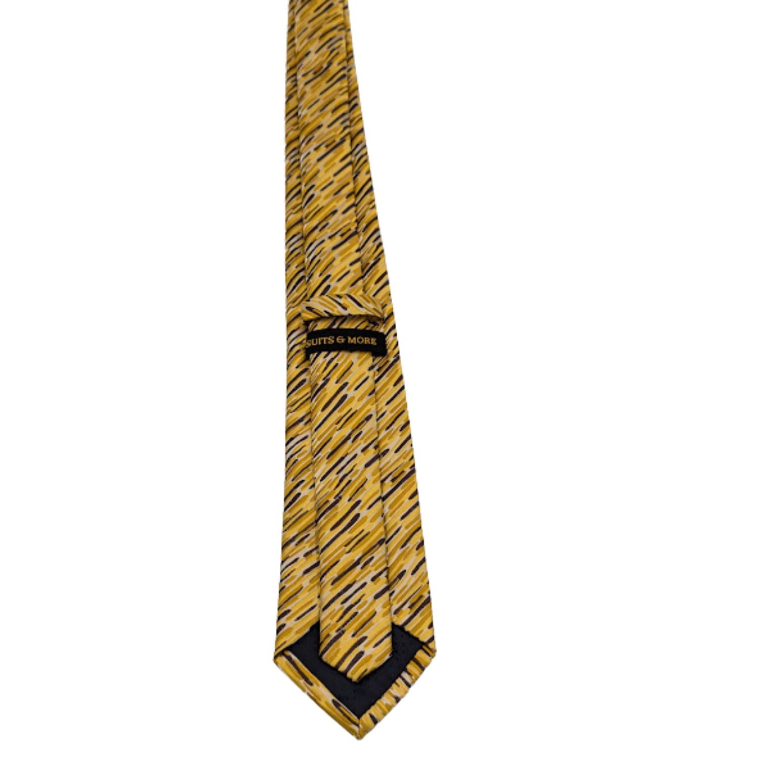 Introducing the Chic Lines Collection's Gold Linear Tie, a statement piece that effortlessly combines sophistication with a playful touch. Crafted from 1200 needle refined polyester, this tie features a sleek linear pattern set against a vibrant Gold background, offering a modern twist on traditional neckwear. it is perfectly proportioned to complement both business and casual attire. This tie is not just an accessory but an essential part of a polished wardrobe, suitable for any occasion where style is key.