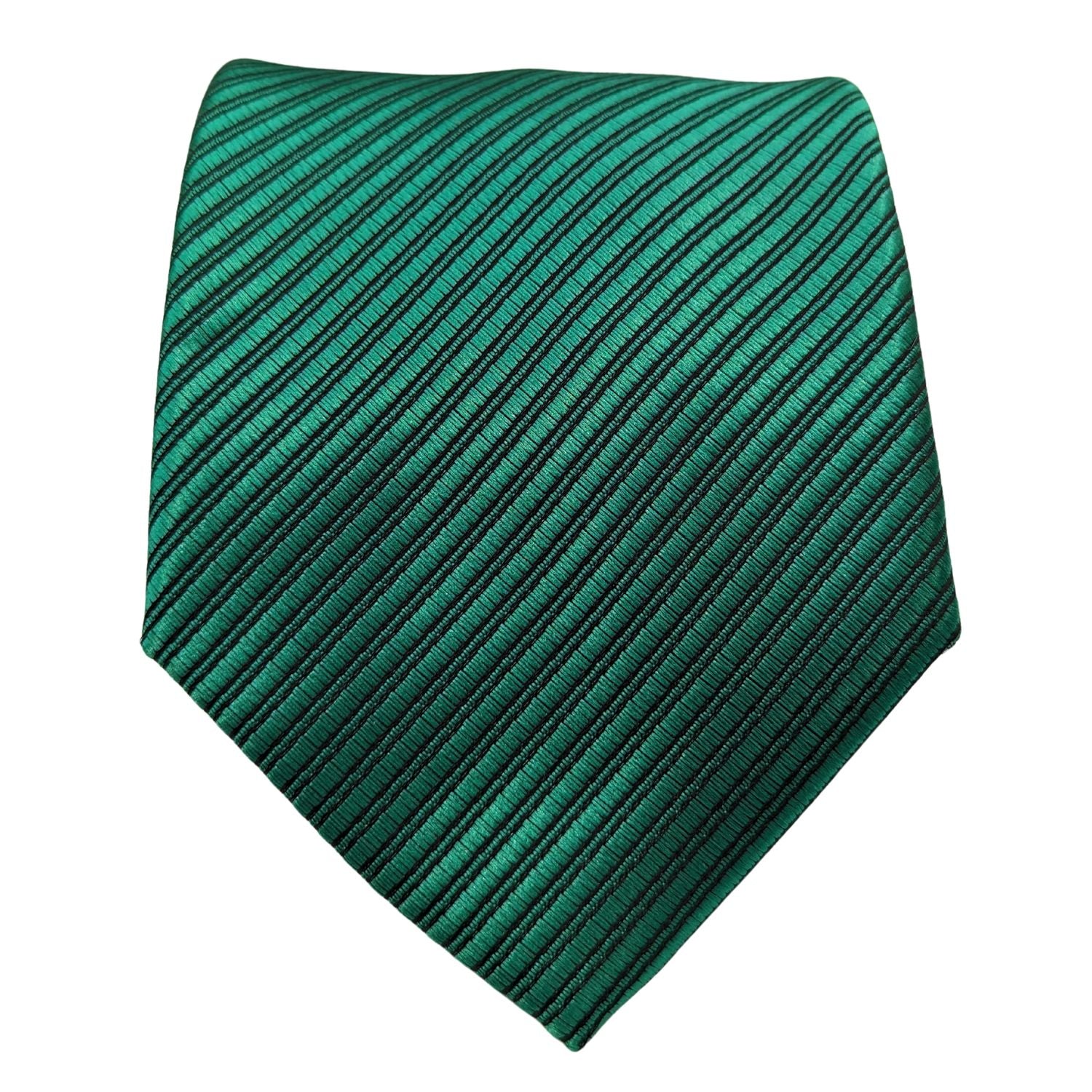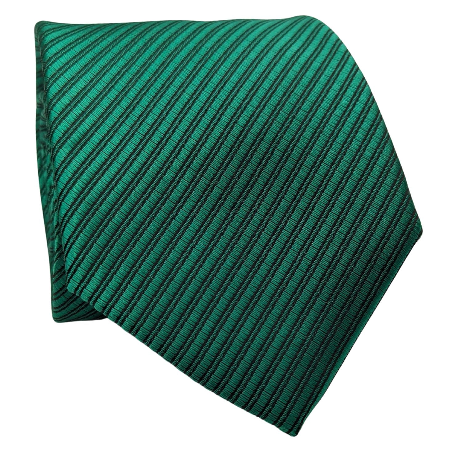 Introducing the Linear Luxe Collection's Emerald Linear Tie, a symbol of precision and sophistication. Crafted meticulously from 1200 needle refined polyester, this tie features a sleek linear pattern in a deep Emerald hue, designed to add a modern touch to traditional attire. this tie is the epitome of refined style, offering a perfect blend of classic and contemporary aesthetics suitable for any occasion.