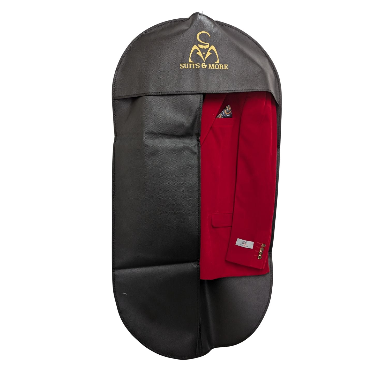 - Elegant Design: Features a striking Suits & More logo in gold, symbolizing quality and sophistication.
