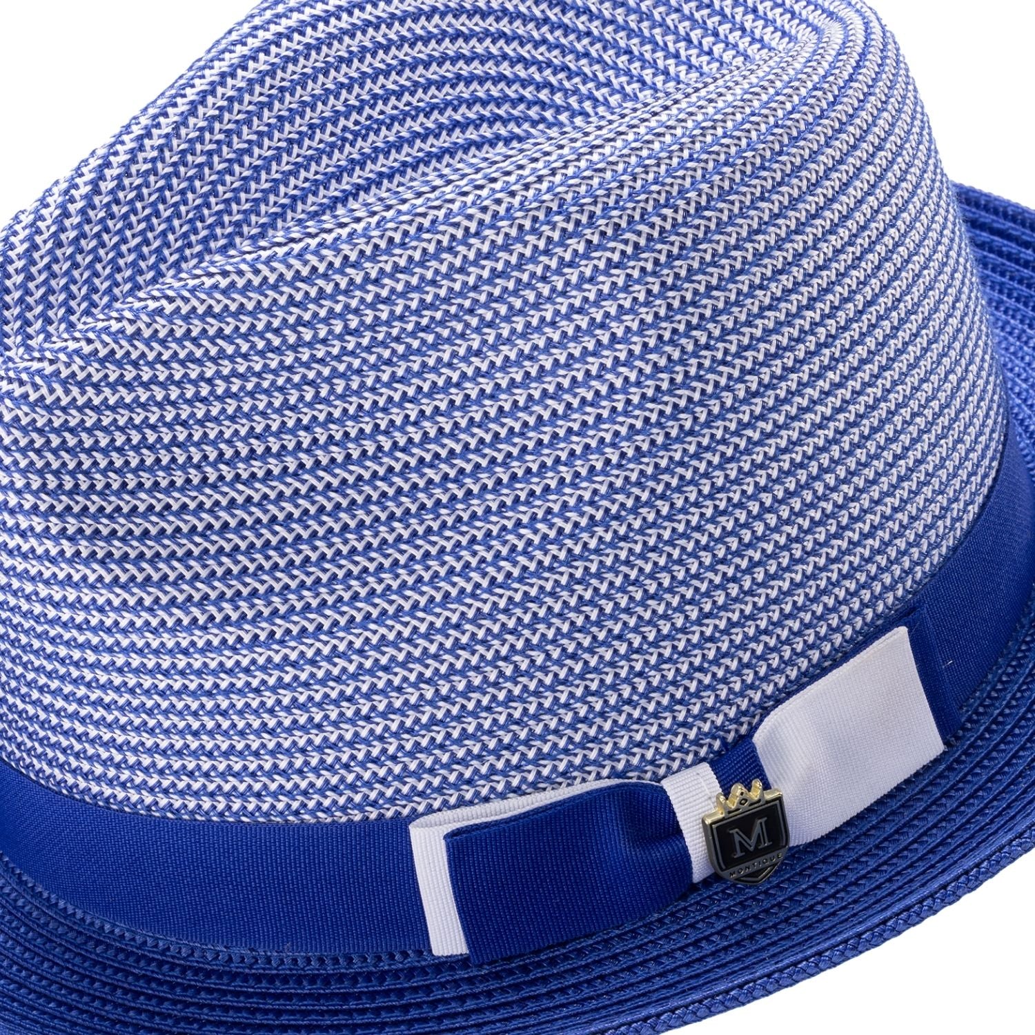 Rubique Collection: Montique Men's Braided Two Tone Stingy Brim Pinch Fedora Hat in Royal