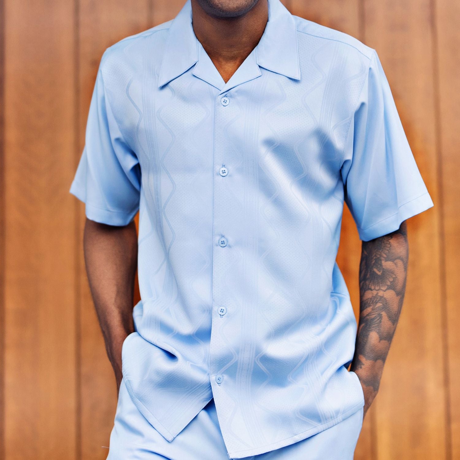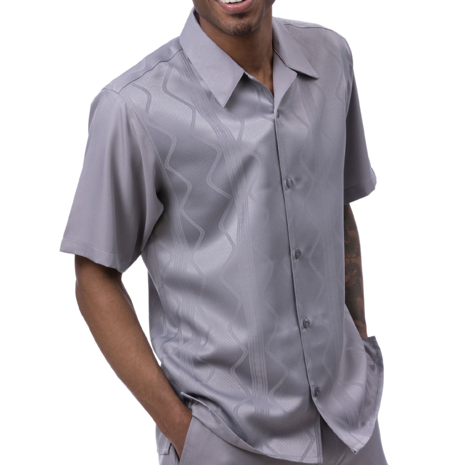 The Antennae Collection by Montique delivers modern sophistication with a sleek, tonal wave pattern walking suit designed for refined elegance and everyday versatility. This two-piece set features a short-sleeve button-down shirt with an elegant wave pattern, adding subtle movement and depth to the design. The matching solid pants complete the look, creating a polished and cohesive ensemble that works perfectly for stylish gatherings, casual events, or evenings out. Designed with an adjustable waistband, this suit ensures a comfortable, tailored fit, making it a go-to choice for effortless style. Crafted from lightweight, durable 100% refined polyester, the Antennae Collection offers breathability, comfort, and long-lasting quality.