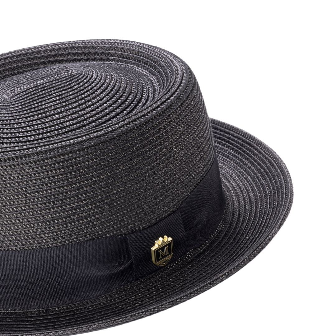 Protostar Collection: Montique Men’s Solid Black Straw Pork Pie Hat