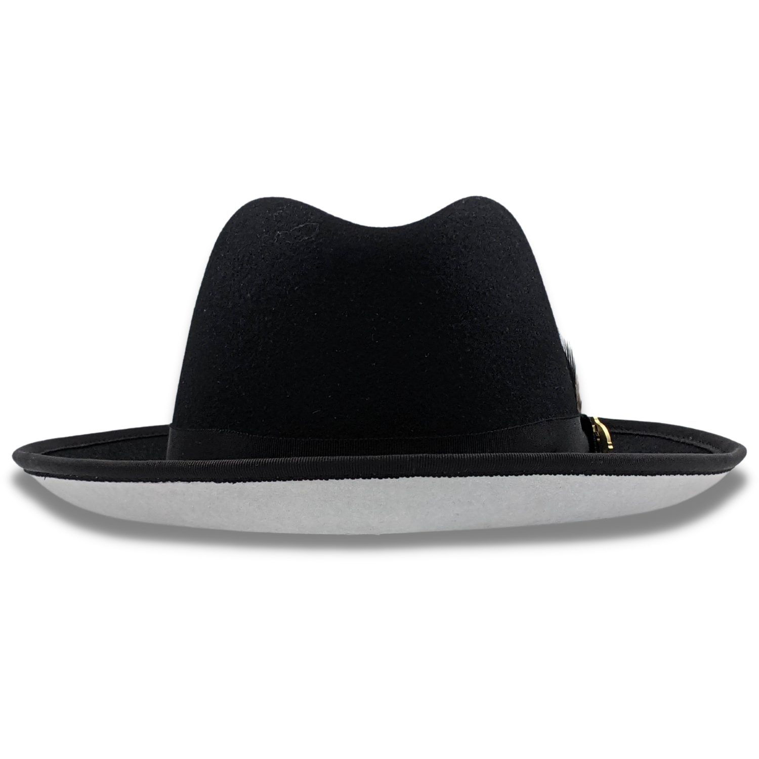 Groovify Collection: Montique Black 2 3/4" Brim White Bottom Wool Felt Dress Hat