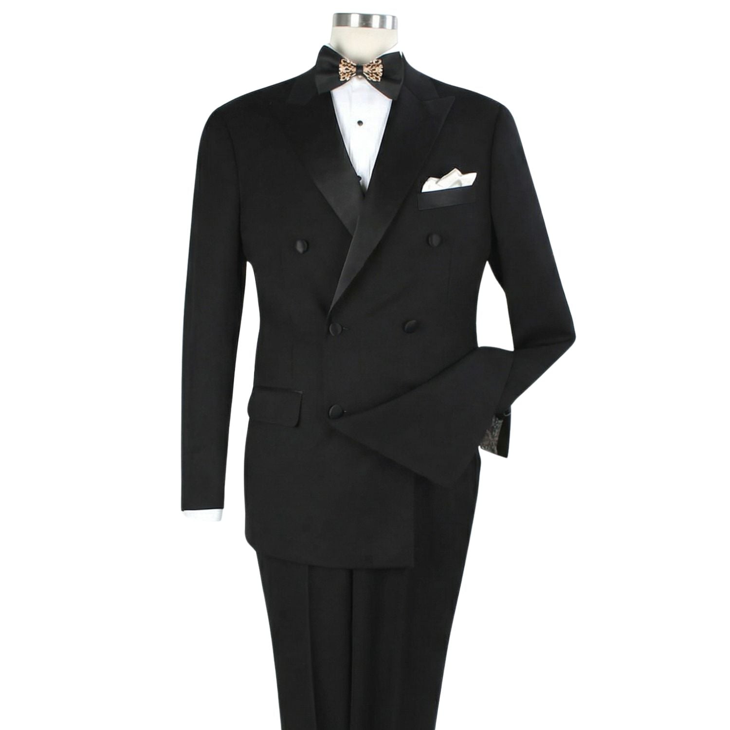 Albireo Collection: Black 2-Piece Double-Breasted Tuxedo - Modern Fit - Satin Peak Lapel