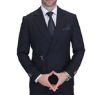Redefine power dressing with the Aurelian Crest Collection, a bold and refined 2-piece modern fit suit crafted from luxurious Italian Super 200’s wool. The standout metal buckle closures on the jacket and cuffs add an avant-garde edge, making this black-colored suit a statement of confidence and style.