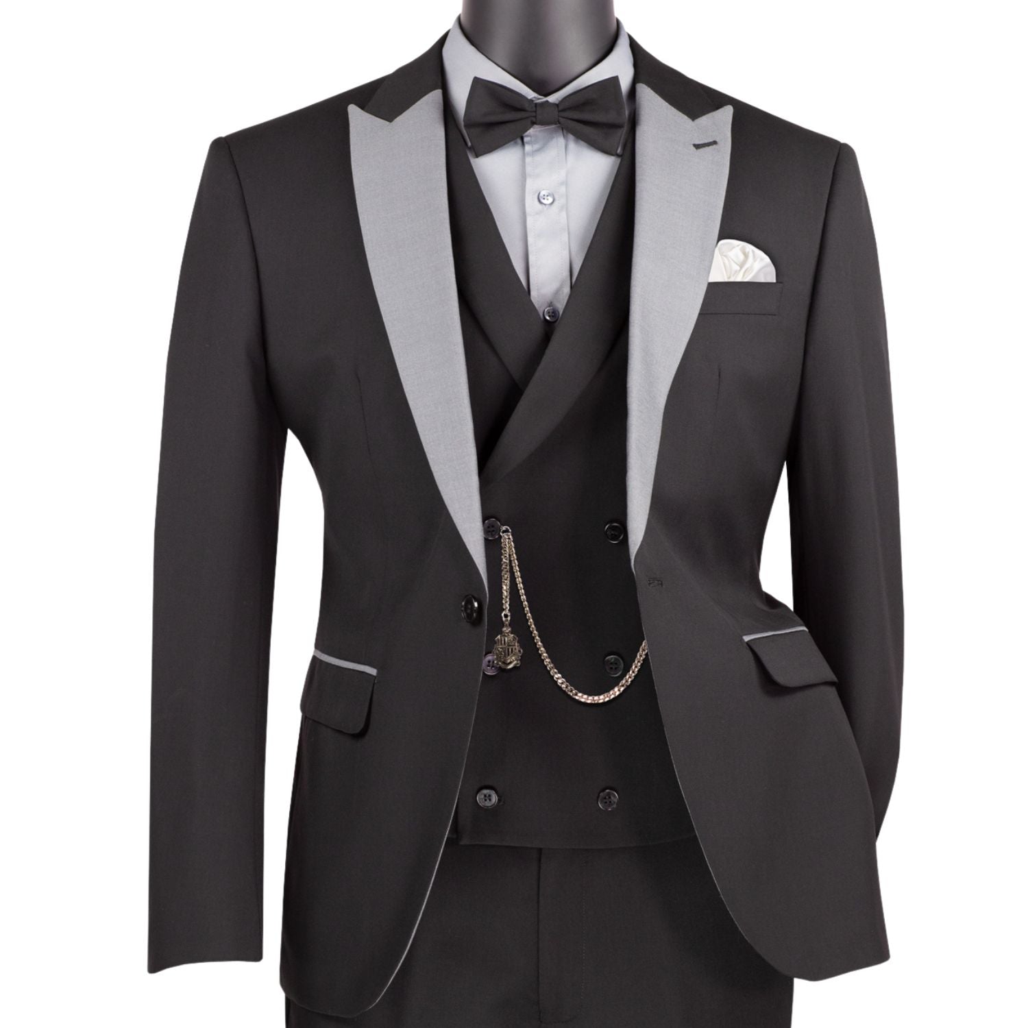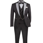 Kraz Collection: Black 3-Piece Single-Breasted 1-Button Peak Lapel Slim Fit Suit - Luxury Wool Feel
