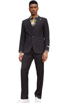 Lavellaby Collection: 3 Piece Men's Pinstripe Hybrid Fit Suit In Black