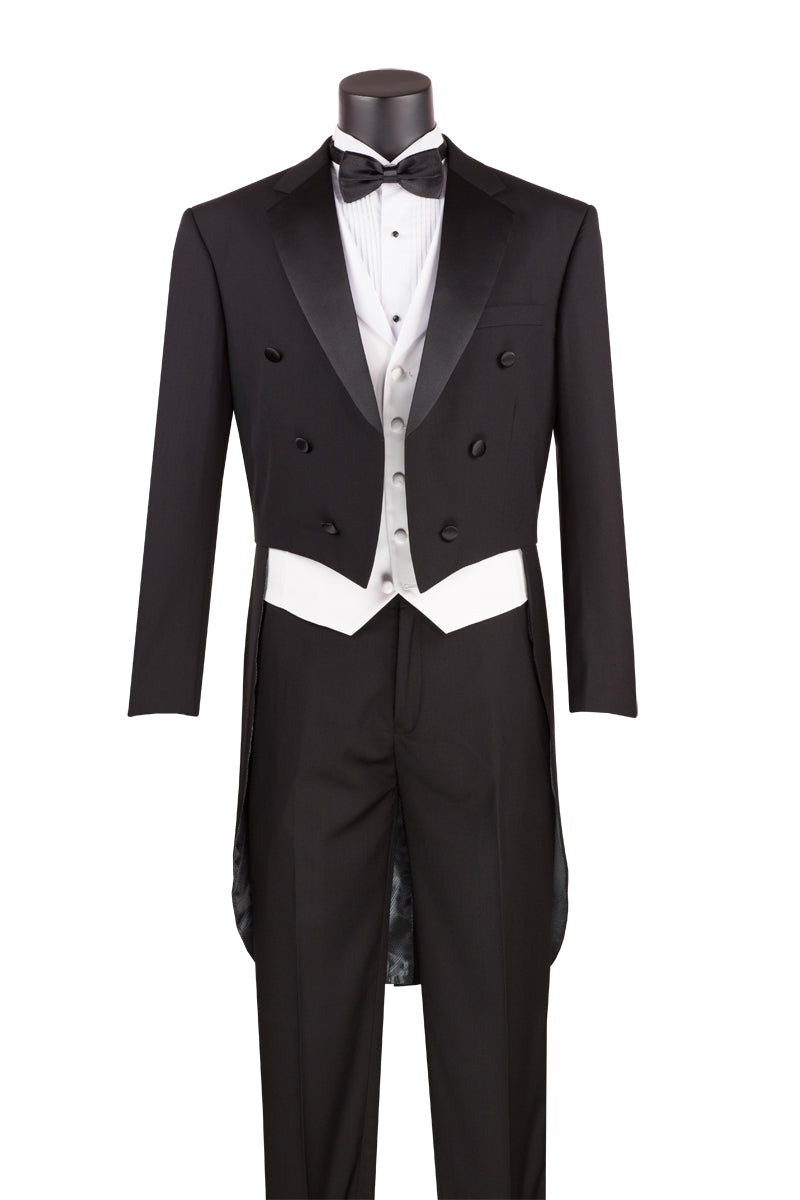 Nashira Collection: Regular Fit Black Tuxedo with Tails – 3-Piece with Vest and Pleated Pants