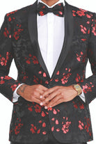 Decoroso Collection: Men's Floral Pattern Blazer With Interior Pic Stitching in Black & Red