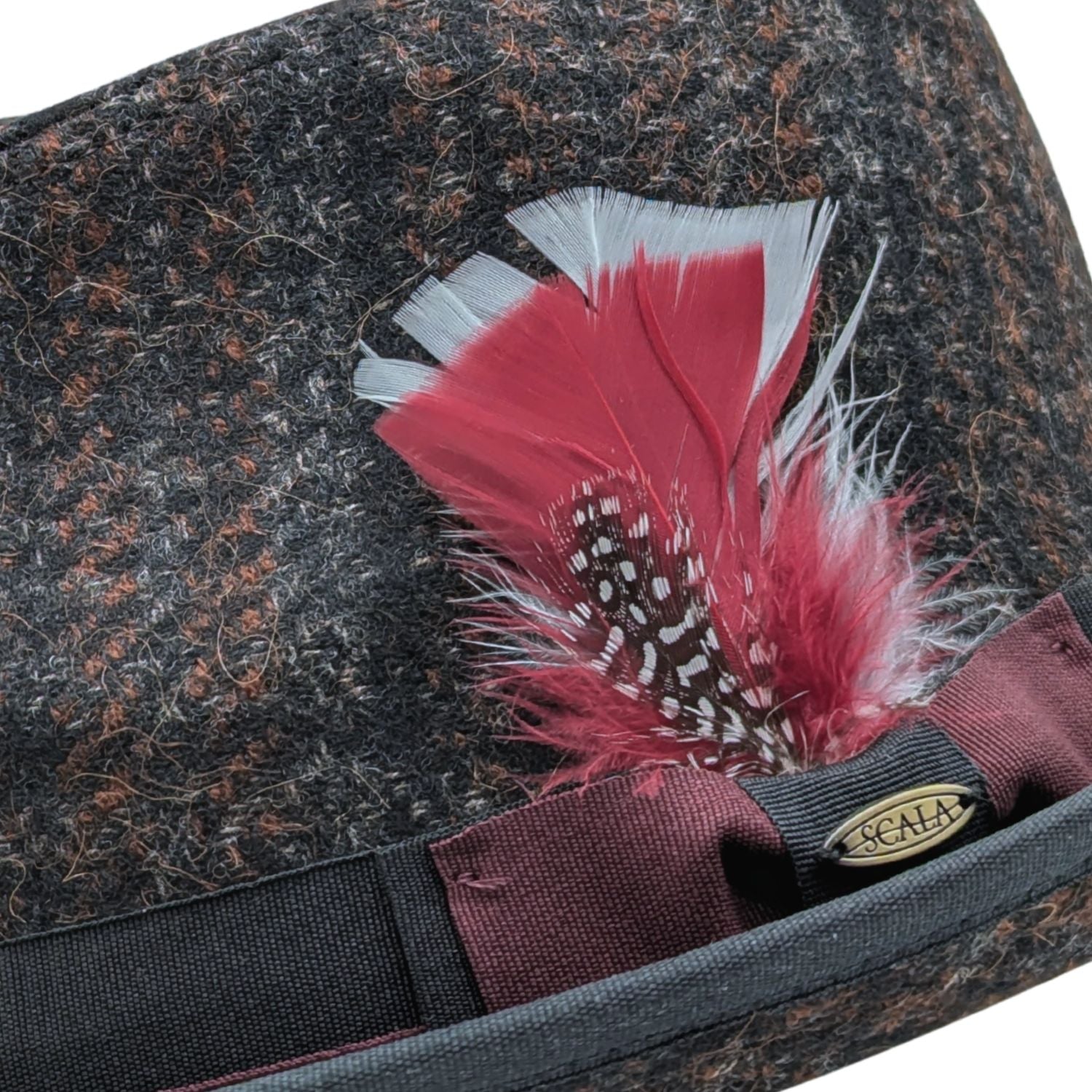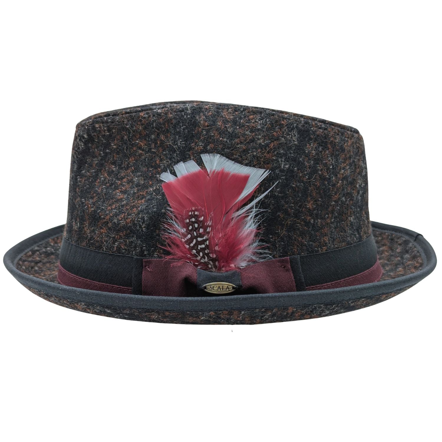 Ashford Collection: Scala Tweed Wool Blend Fedora with 1 3/4” Brim and Double Bow - Brown