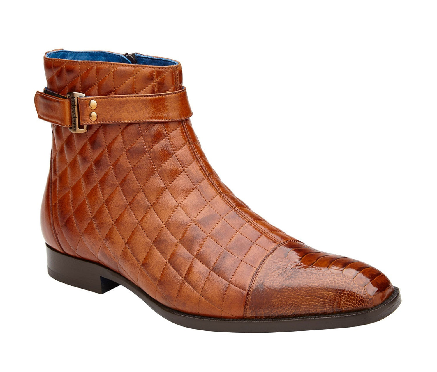 Belvedere Libero Ant Almond Quilted Italian Calf and Ostrich Leg Leather Boots