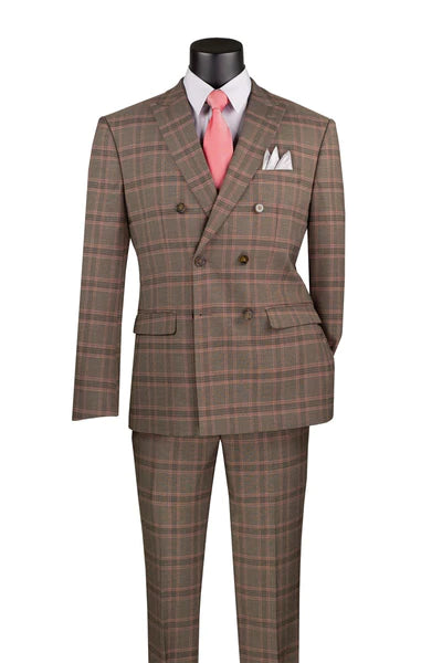 Vintique Collection: Glen Plaid Slim Fit Suit with Peak Lapel in Brown