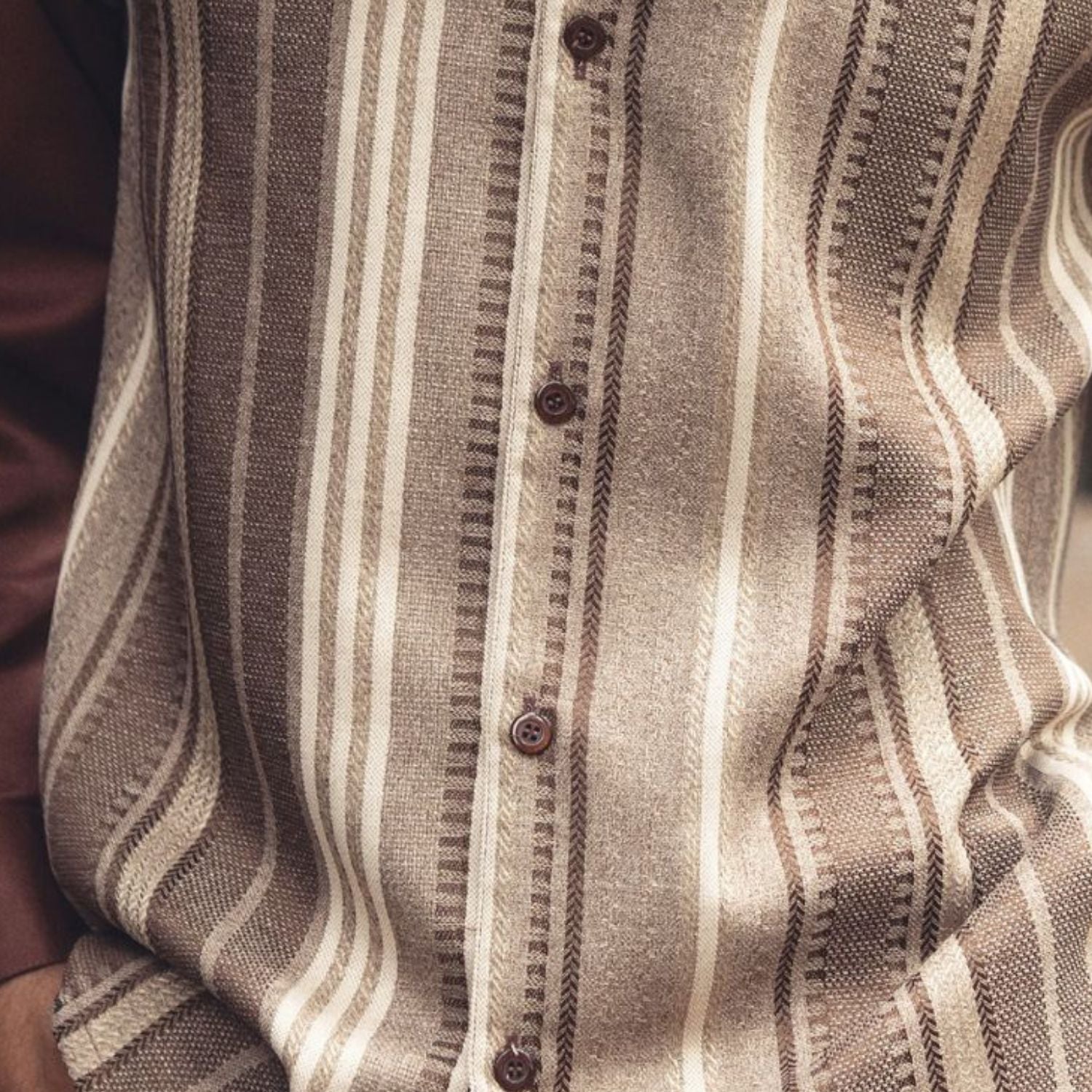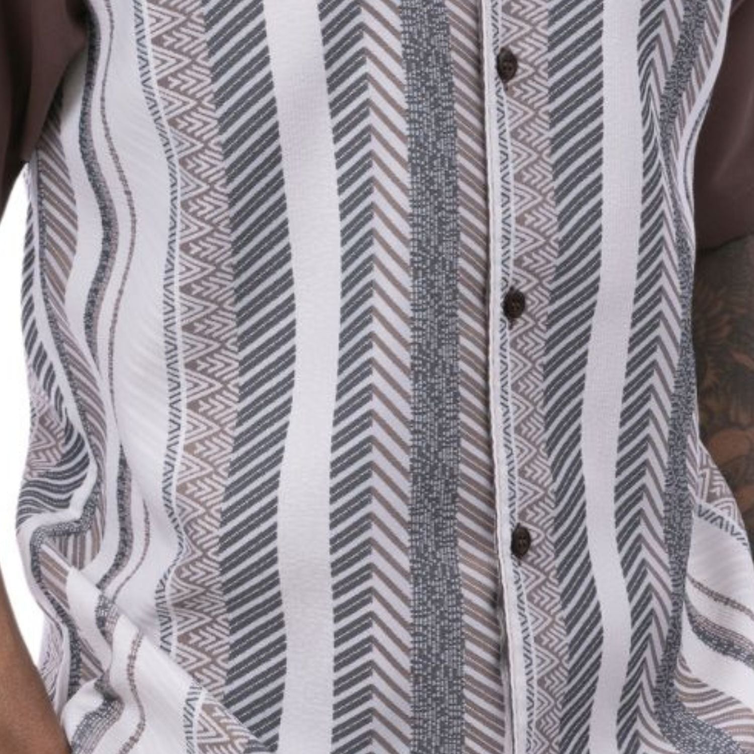 Andromis Collection: Men's Brown 2-Piece Short Sleeve Set with Vertical Geometric Stripes