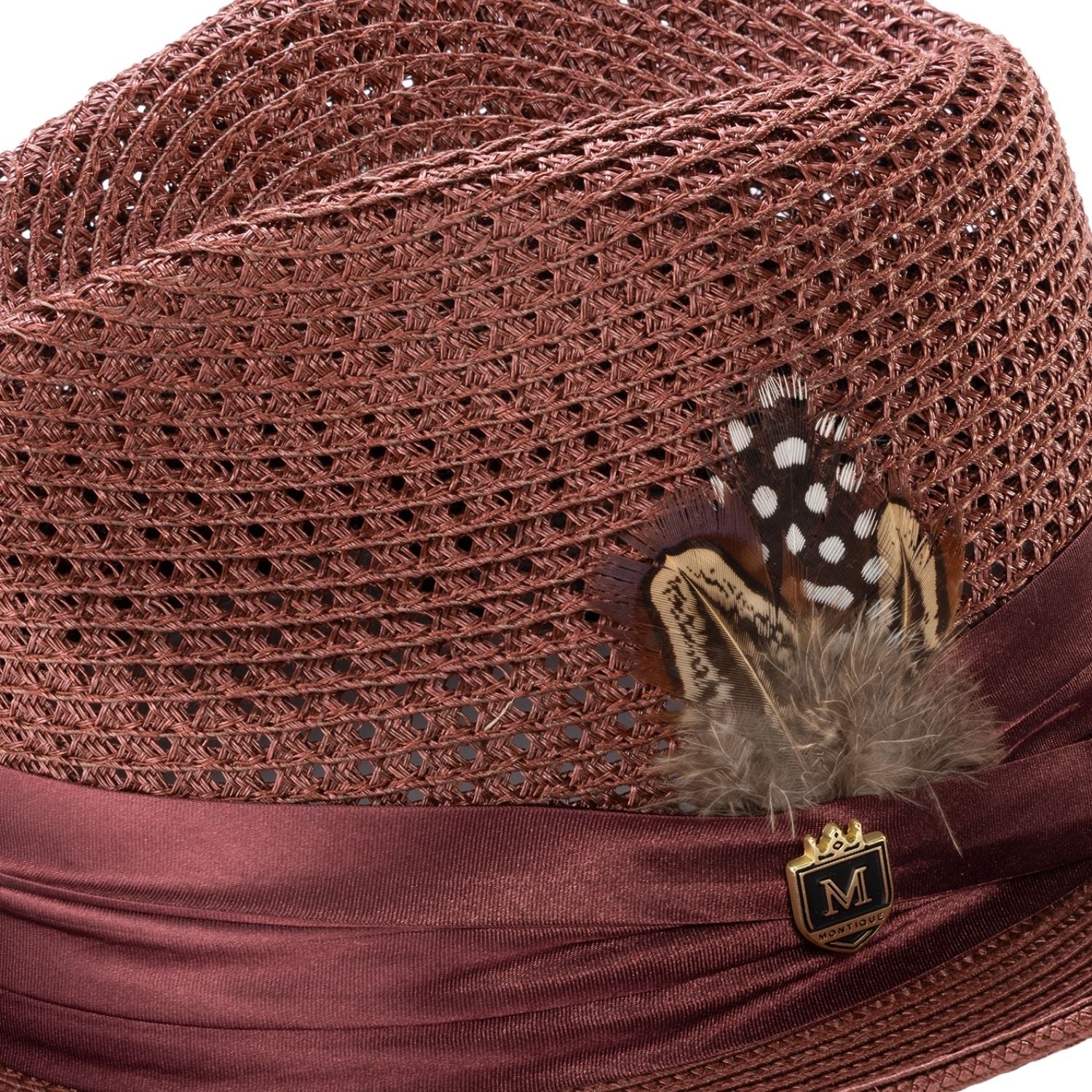 Men's Burgundy Mesh Fedora Hat - Montique Pinch Crown Fedora