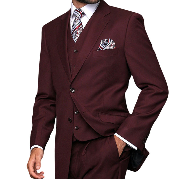 Europa Collection: Burgundy 3-Piece Modern Fit Suit – Super 180's Italian Wool