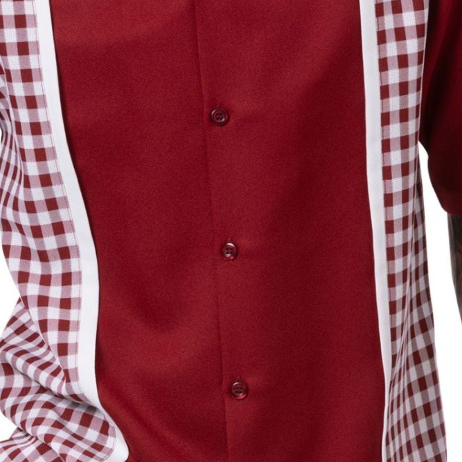 Vintage Charm Collection: Montique's Checker Plaid Color Block Shorts Set Walking Suit In Burgundy WIne -72421