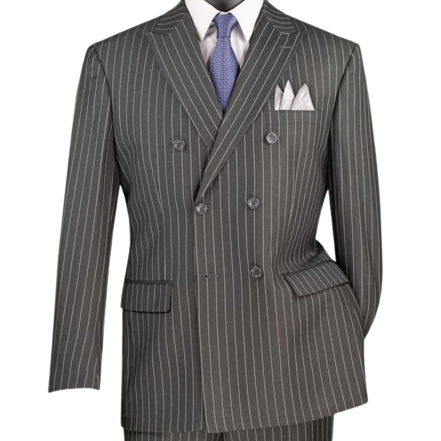 Symphony Collection: Charcoal 2 Piece Pinstripe Double Breasted Regular Fit Suit - FINAL SALE Size 50R/45 Waist