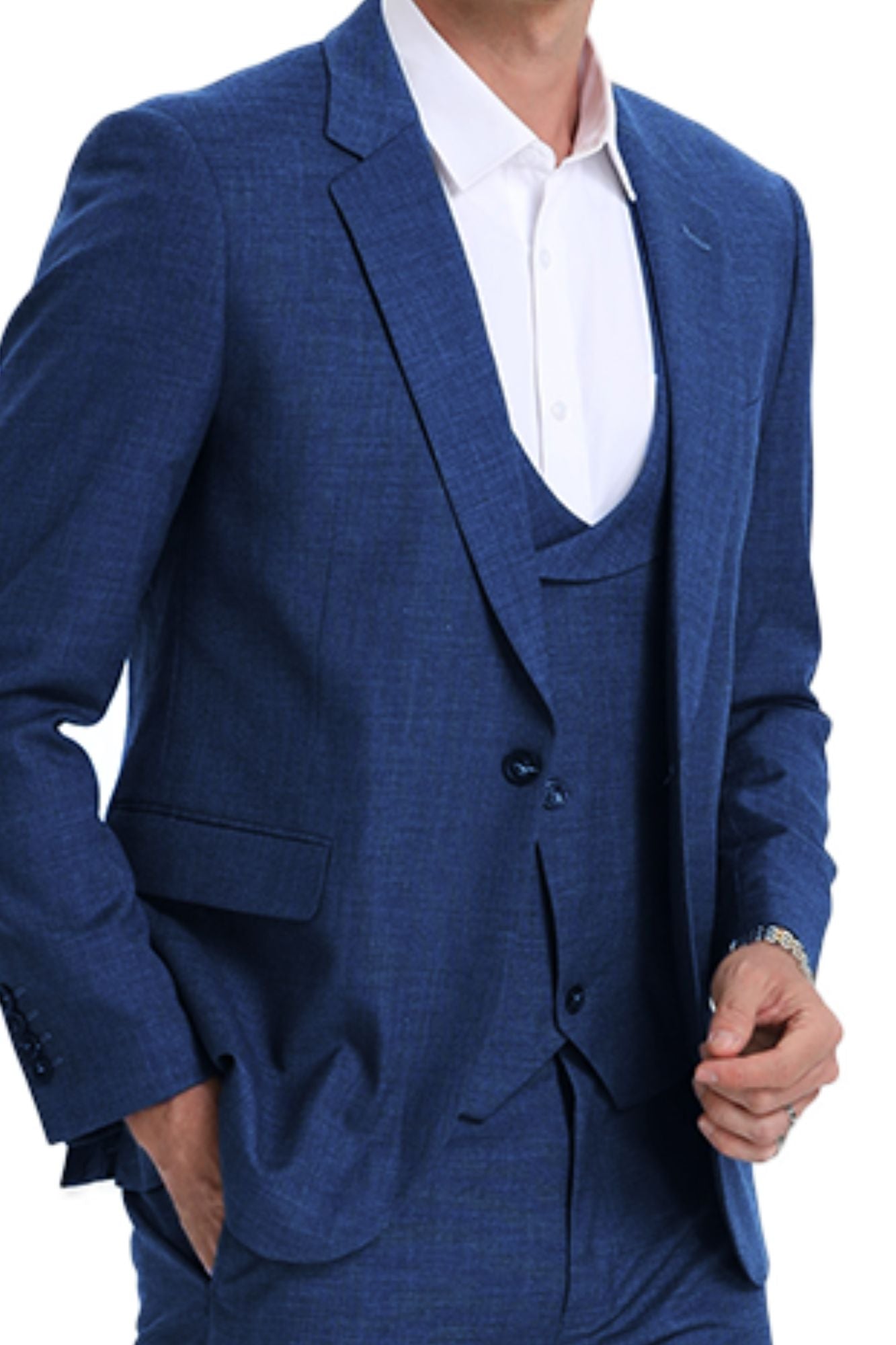 Classique Collection: Navy 3 Piece Solid Color Single Breasted Modern Fit Suit
