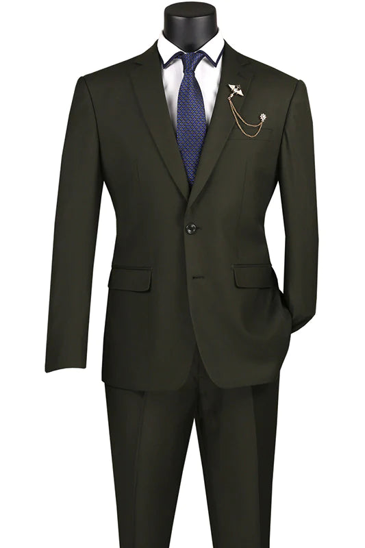 Vintagevo Collection: Olive 2 Piece Solid Color Single Breasted Slim Fit Suit
