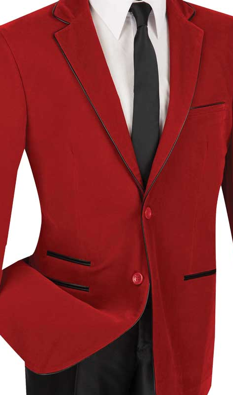 Velourfy Collection: Red Velvet with Faux Leather Trim Single Breasted Slim Fit Blazer