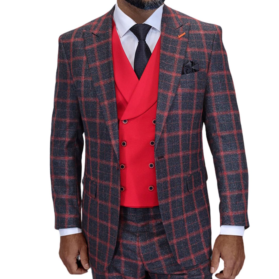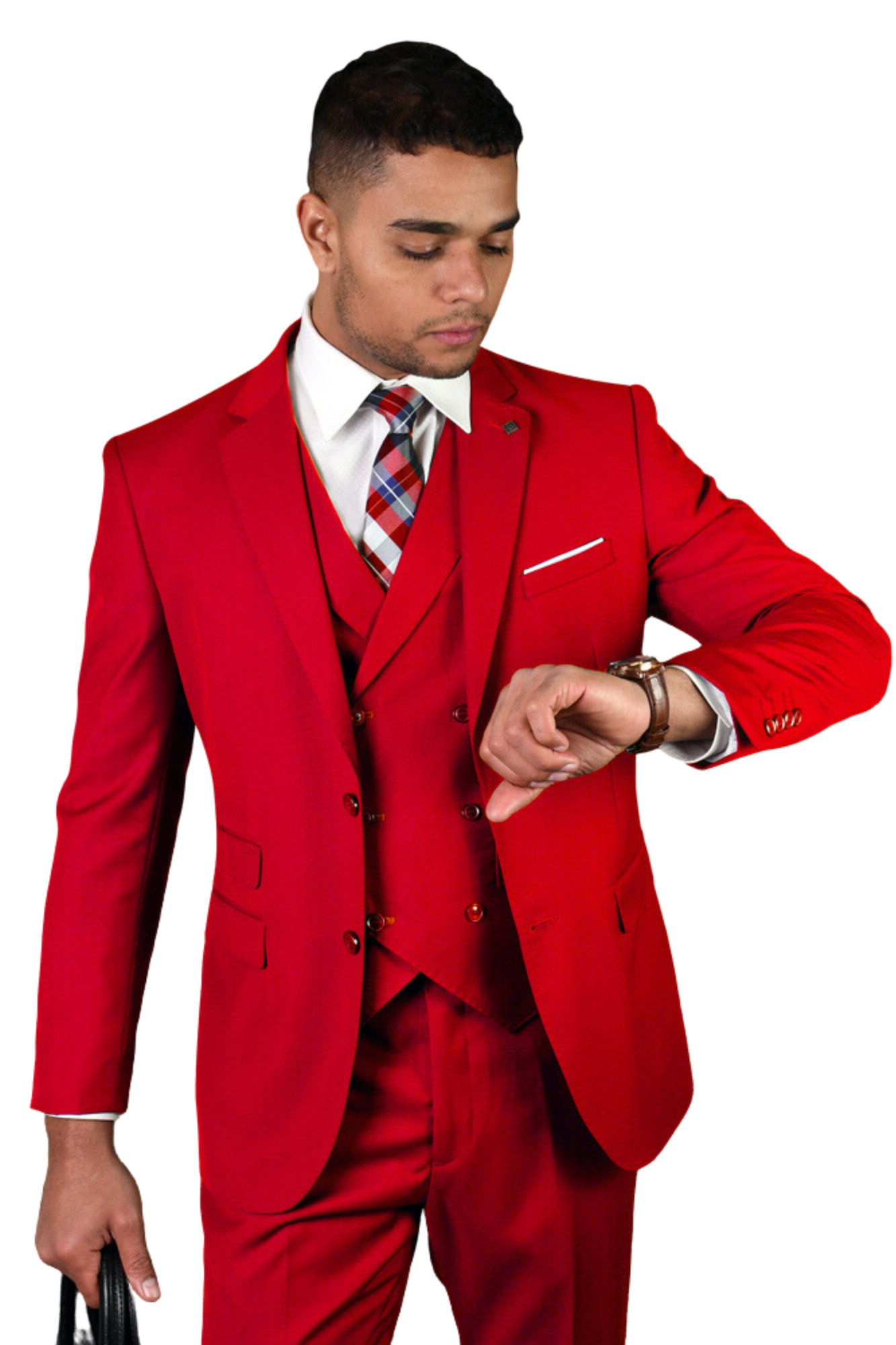 Qualitique Collection: Red 3PC Modern Fit Suit with Double Breasted Vest