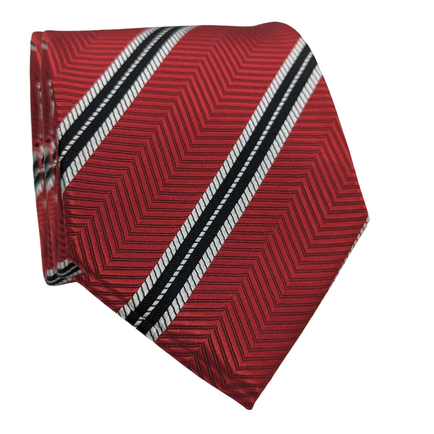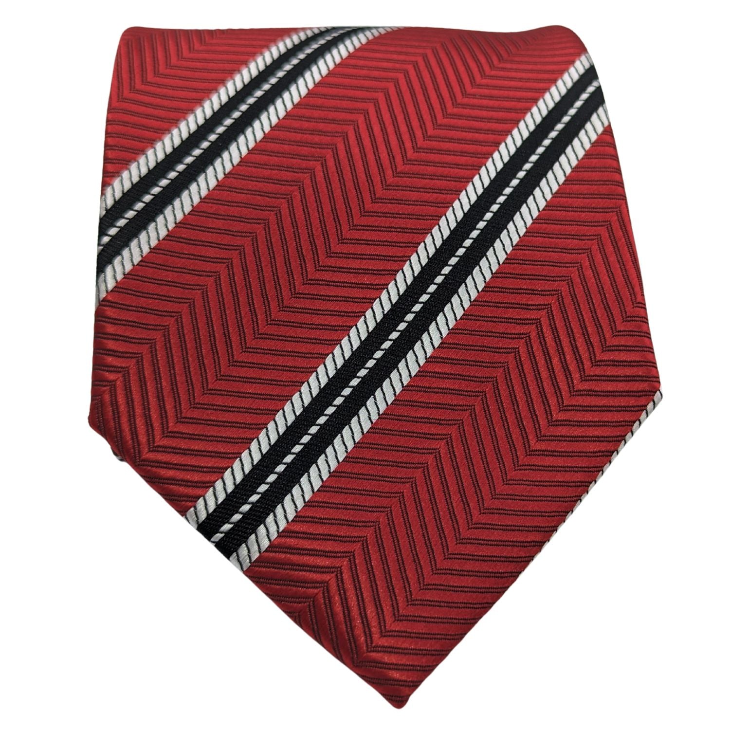 Vivid Vector Collection: Red Geometric Tie with Contrasting Stripes