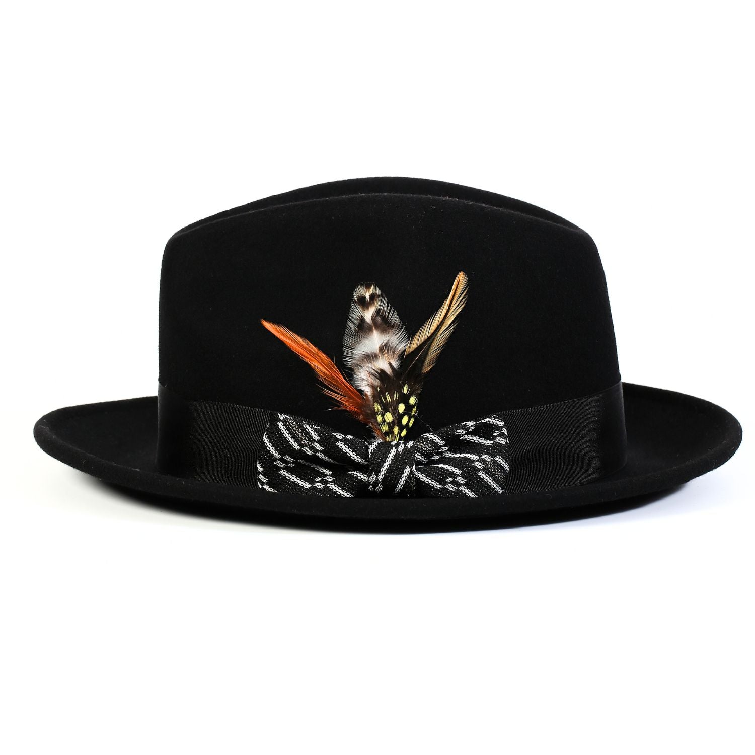 Imperialis Collection: Montique Black/White with Matching Grossgrain Ribbon 2 1/2" Wool Felt Fedora Hat
