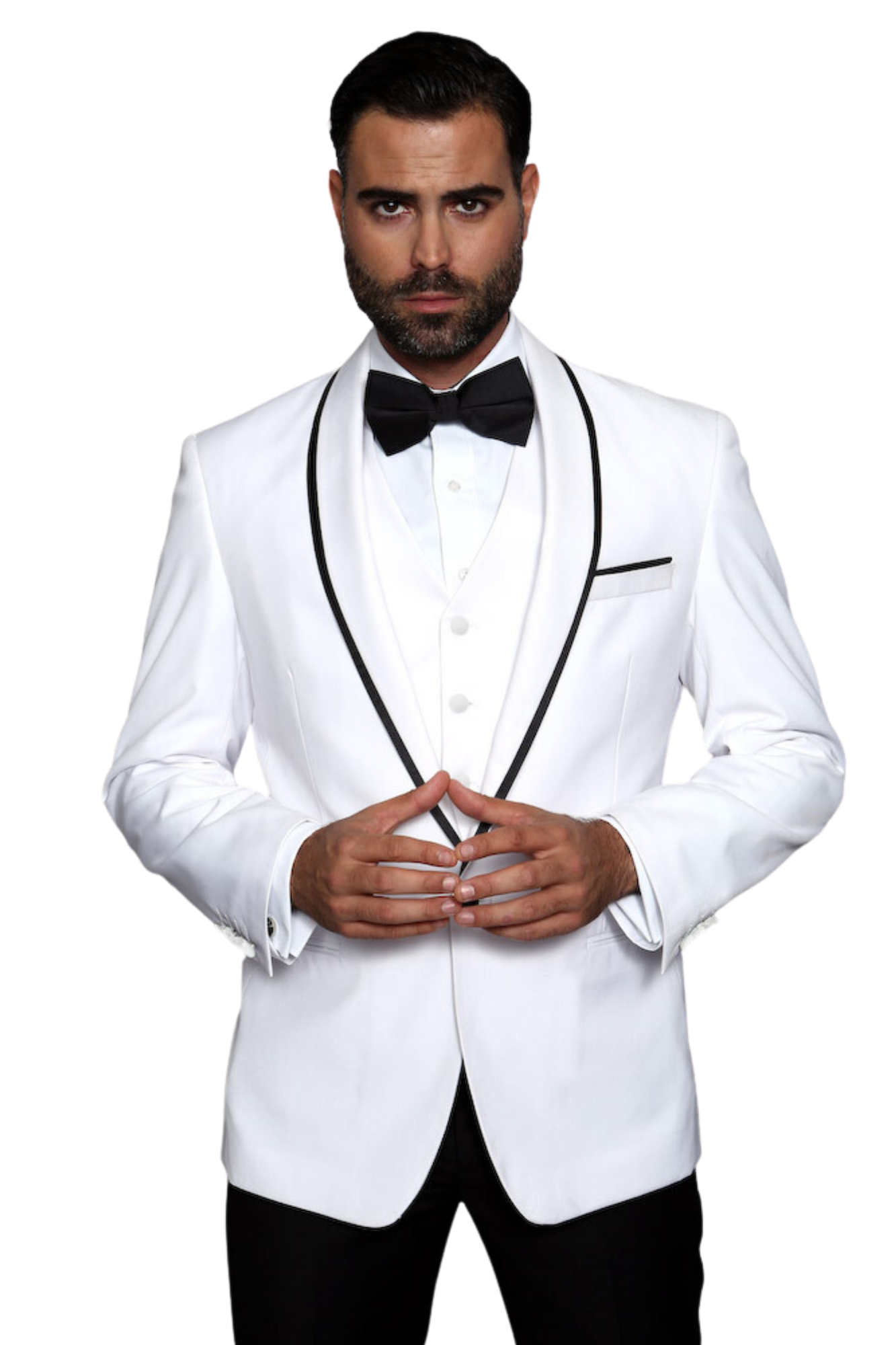 ModishMondo Collection: White 4 Piece Solid Color Single Breasted Regular Fit Tuxedo
