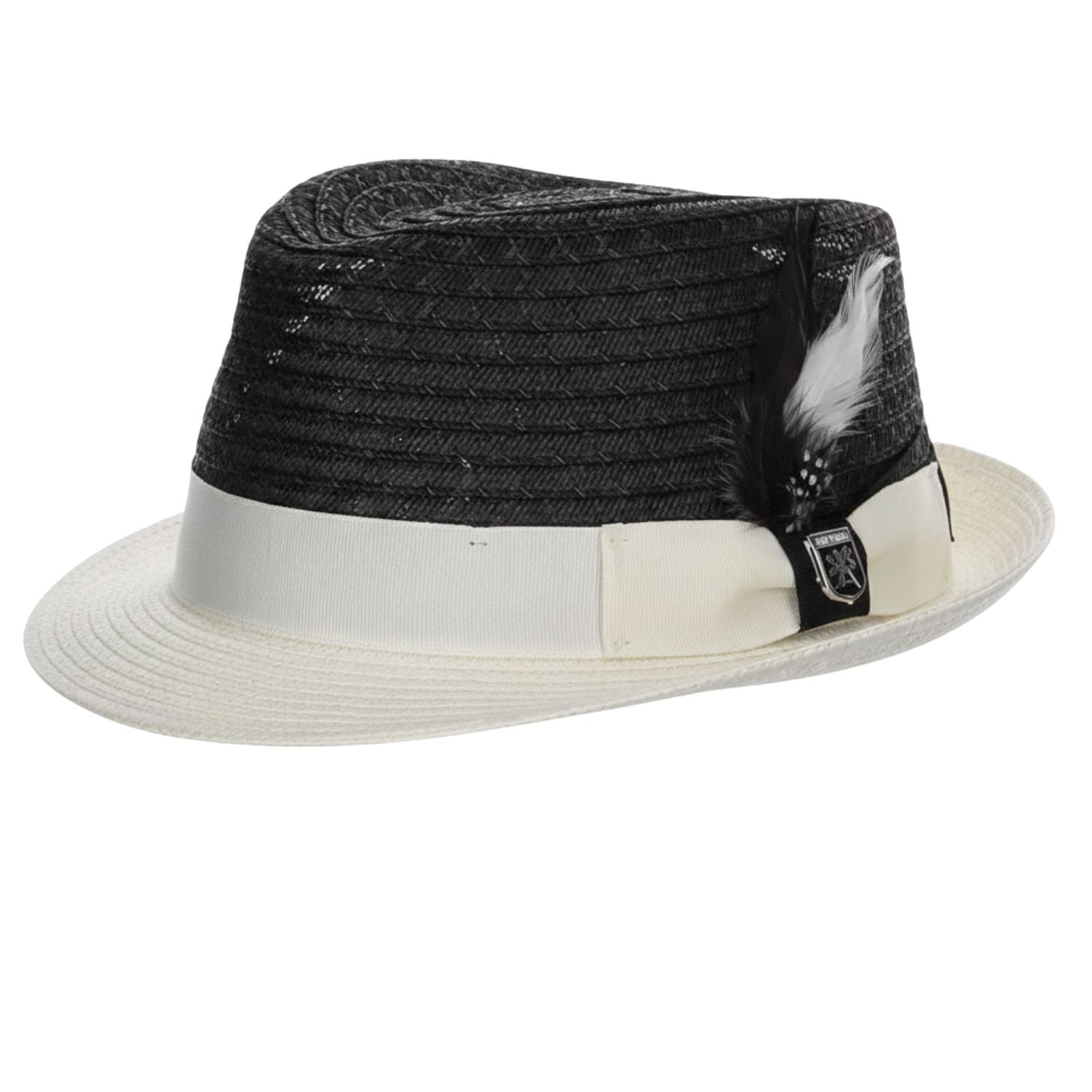 Beaumont Collection: Stacy Adams Black & White Vented Paper Braid Fedora with Grosgrain Bow