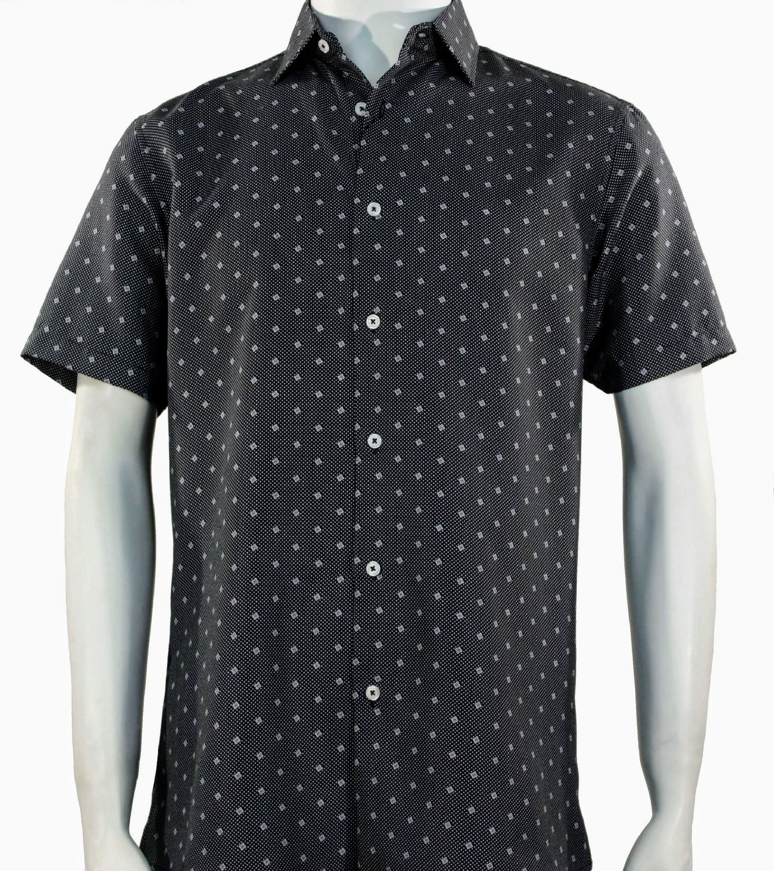 Black MicroDiced Print Men's Short Sleeve Shirt - Modern Fit