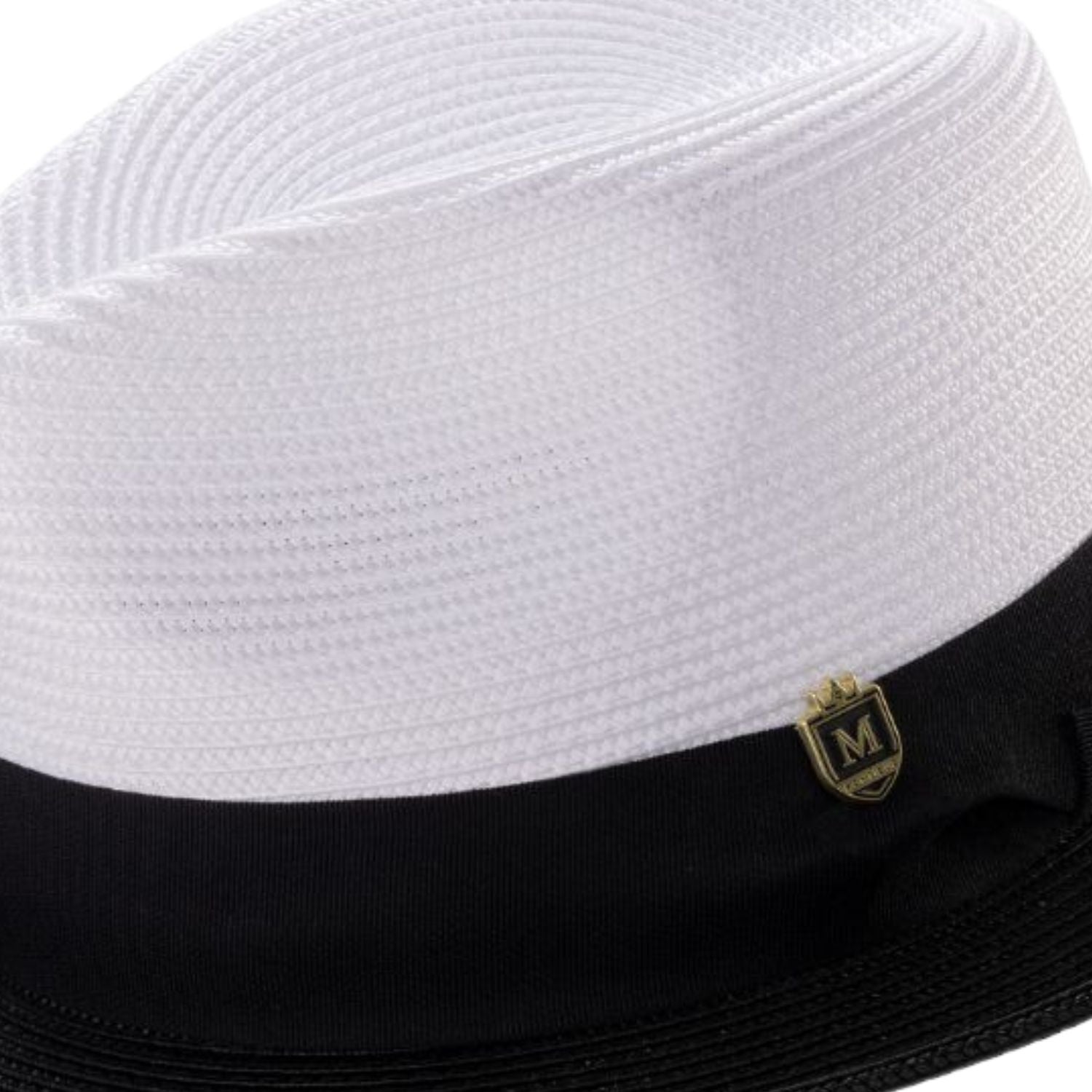 Galanza Collection: Montique Black Two-tone Pinch Fedora With Matching Grosgrain Ribbon- Wide Brim H47