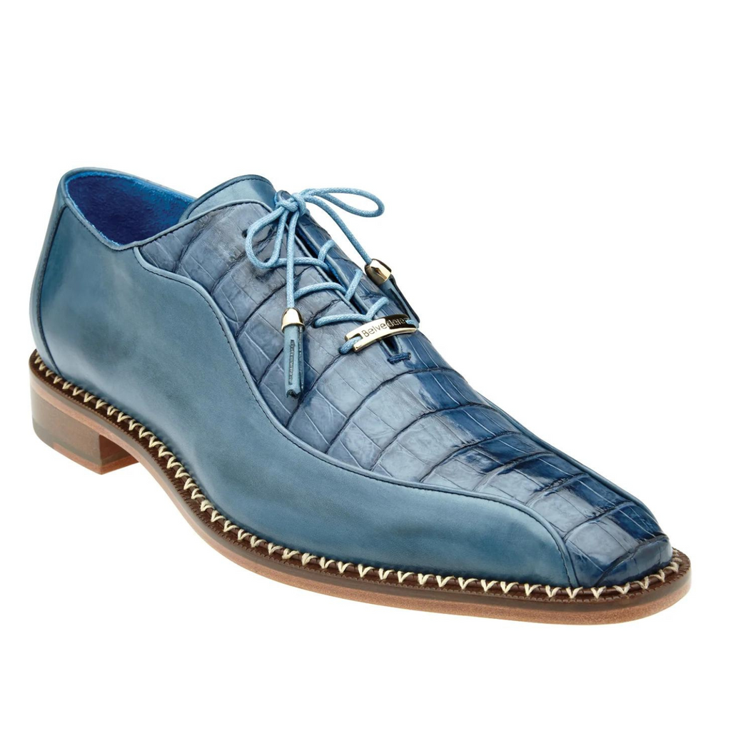 Belvedere Vasco Genuine Hornback Caiman & Italian Calf Sneakers in Night Blue