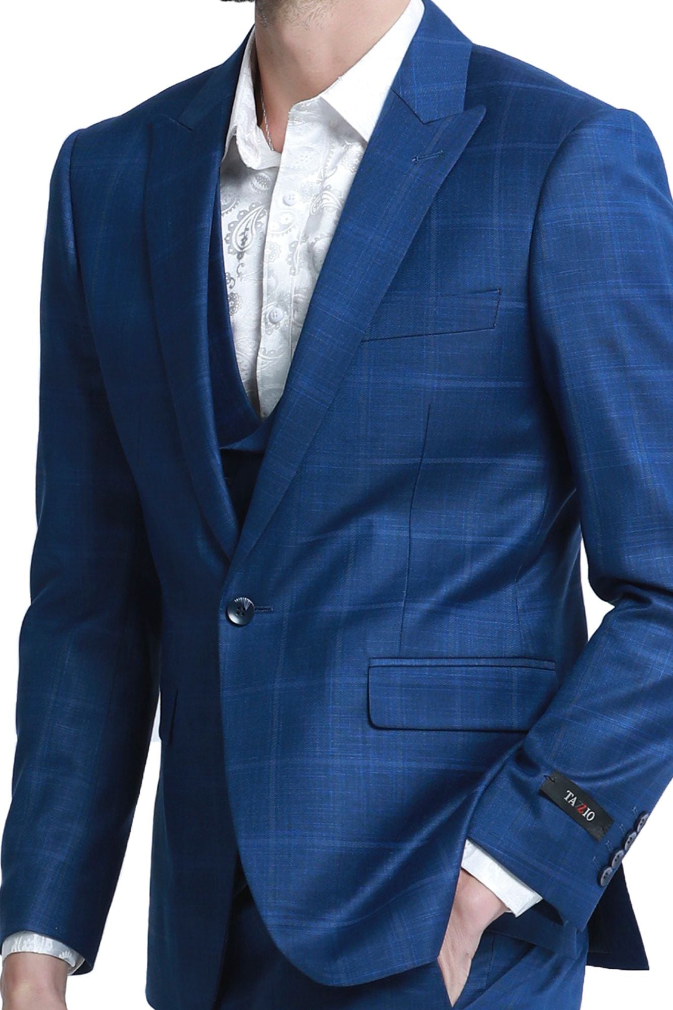 Elegancia Collection: Blue 3 Piece Windowpane Single Breasted Modern Fit Suit