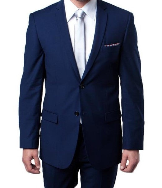 Chicquel Collection: Blue 2 Piece Solid Color Single Breasted Slim Fit Suit
