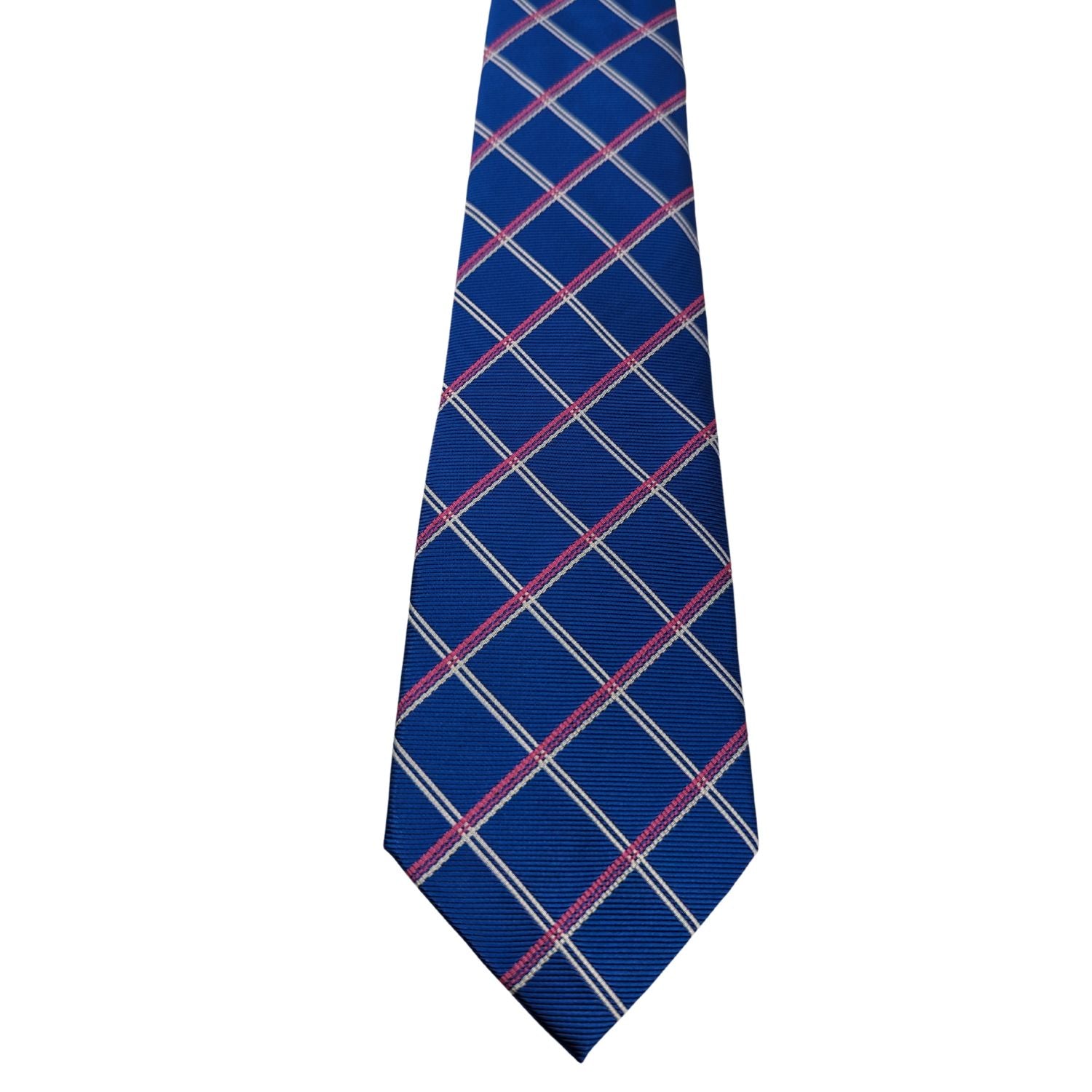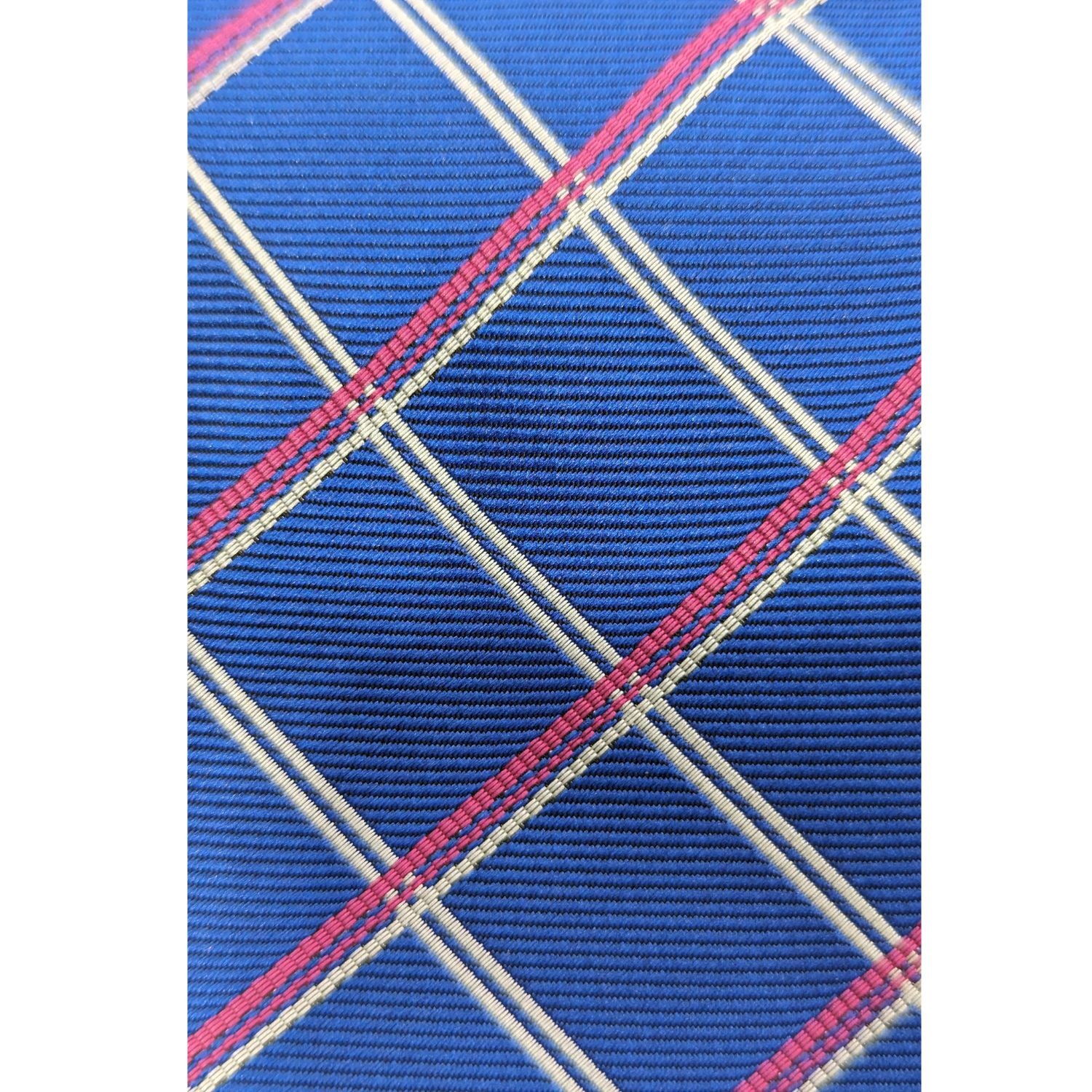 Classic Allure Collection: Blue Diamond Pattern Tie With Pink And Grey Stitching