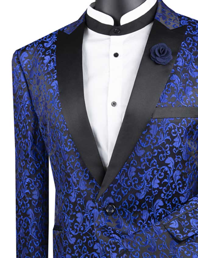 Luxnova Collection: Blue Jacquard Print Shawl Lapel Blazer – Regular Fit