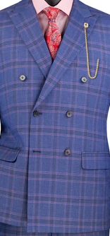 Luxelito Collection: Blue 2 Piece Glen Plaid Double Breasted Modern Fit Suit