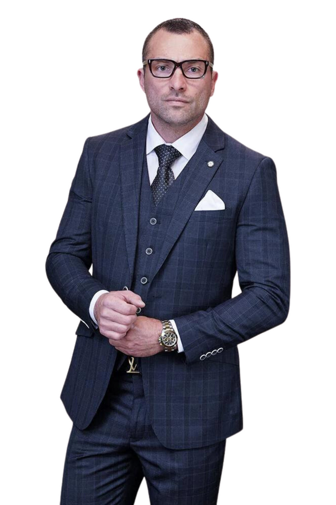 Dapperique Collection: Charcoal Plaid 3-Piece Suit with Double-Breasted Vest - Modern Fit