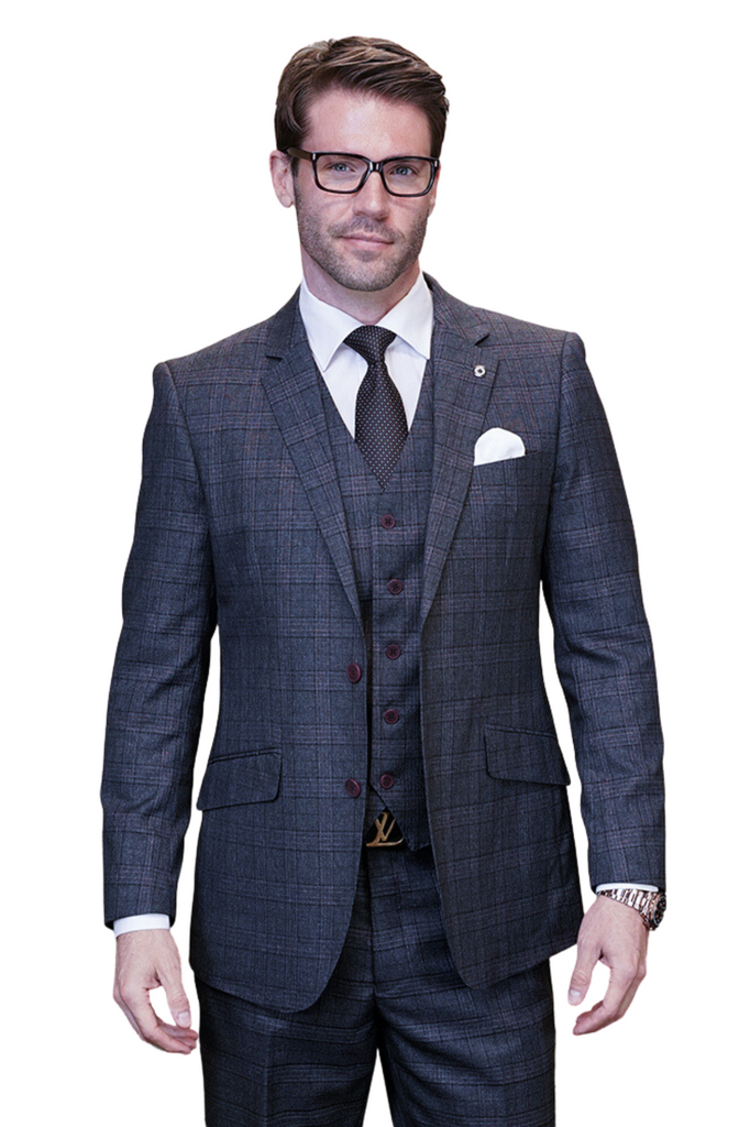 ElegantEcho Collection: Charcoal 3 Piece Glen Plaid Single Breasted Regular Fit Suit