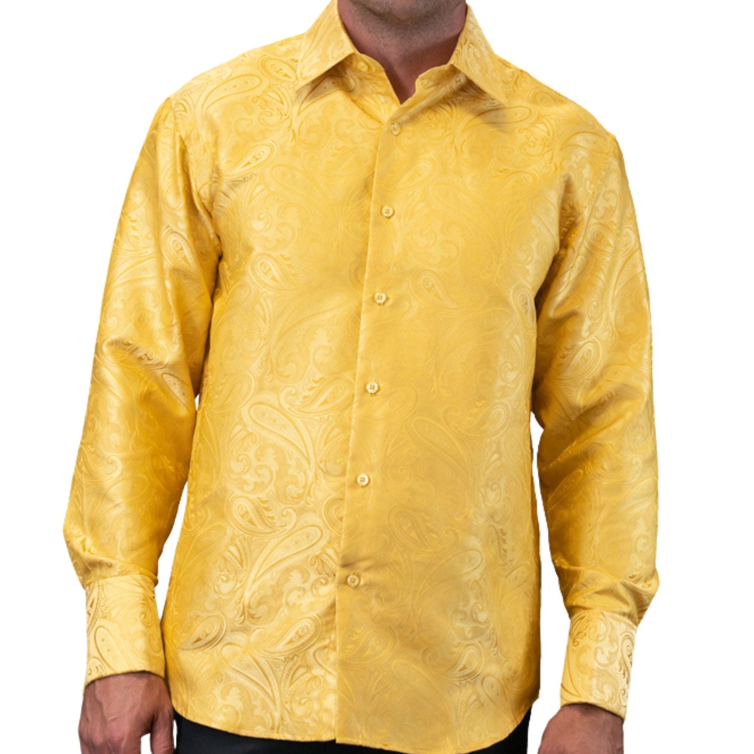 Miranda Collection: High-Quality Gold Fancy Woven Long Sleeve Shirt
