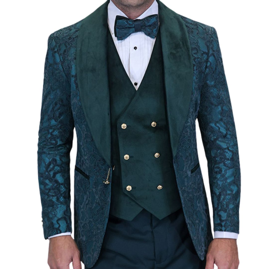 Empyrean Collection: Statement 3-Piece Hunter Velvet Tuxedo with Gold Accents