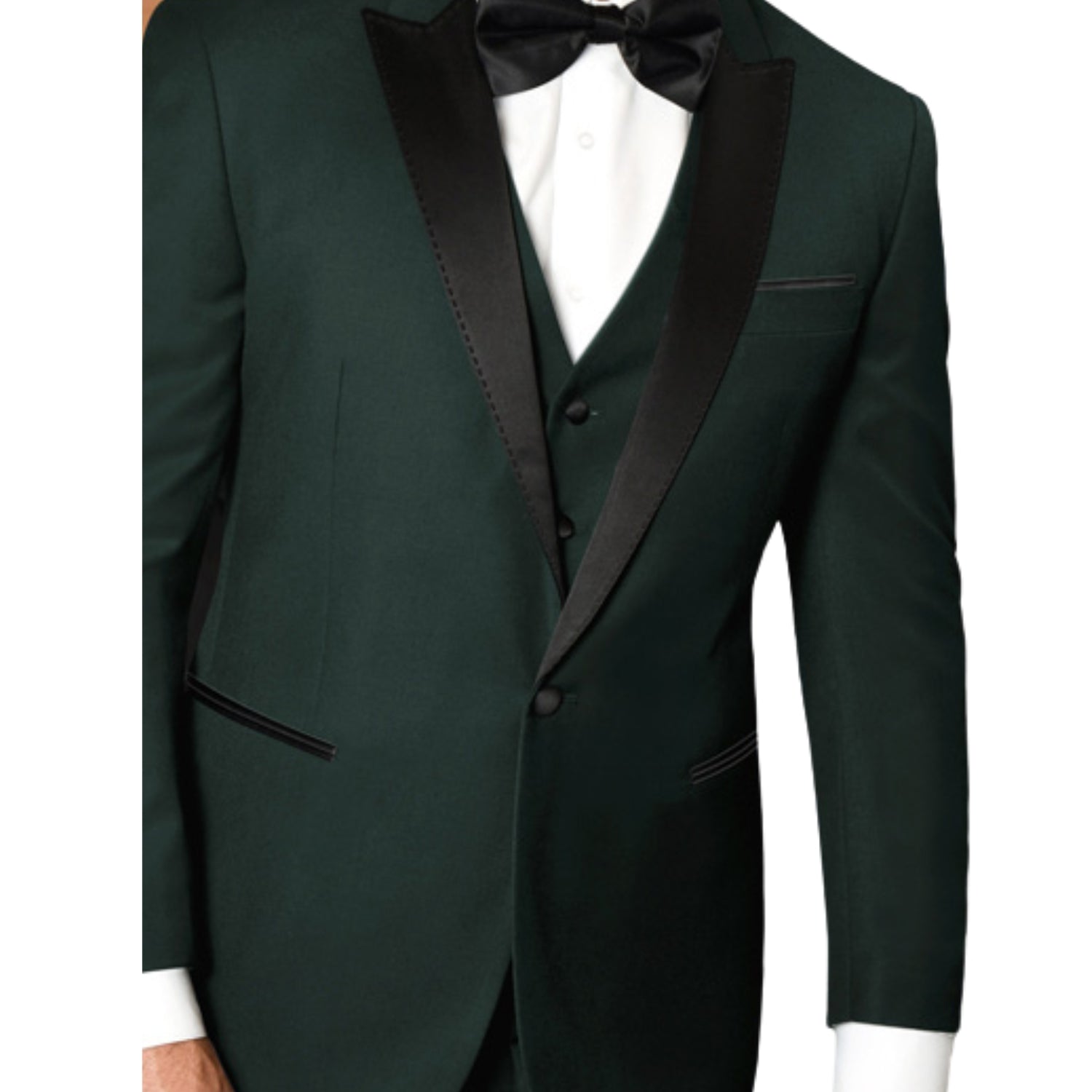 Eliot Collection: 3PC Hunter Tuxedo with Flat Front Pants and Matching Bow Tie