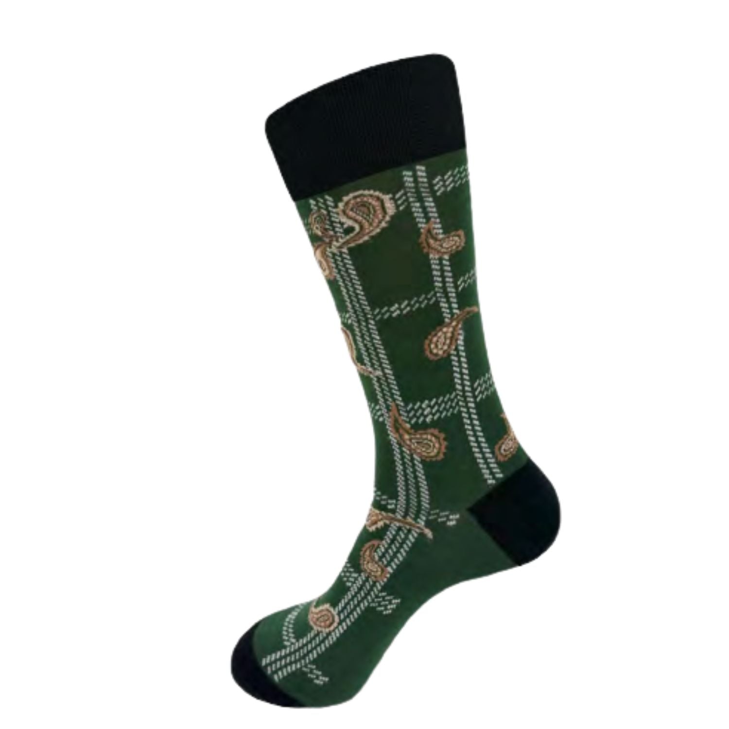 Vannucci Hunter Green Plaid Paisley Dress Socks