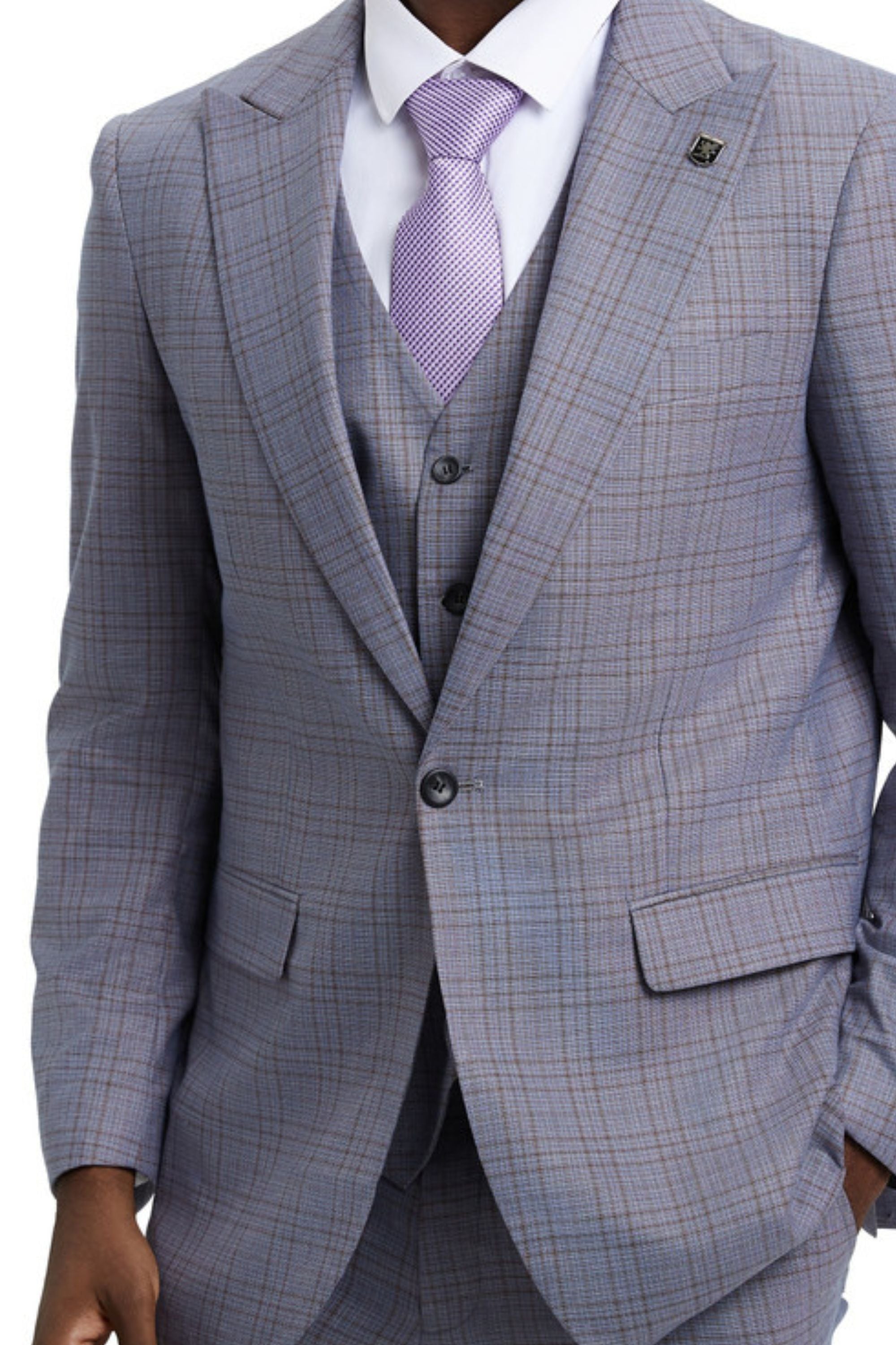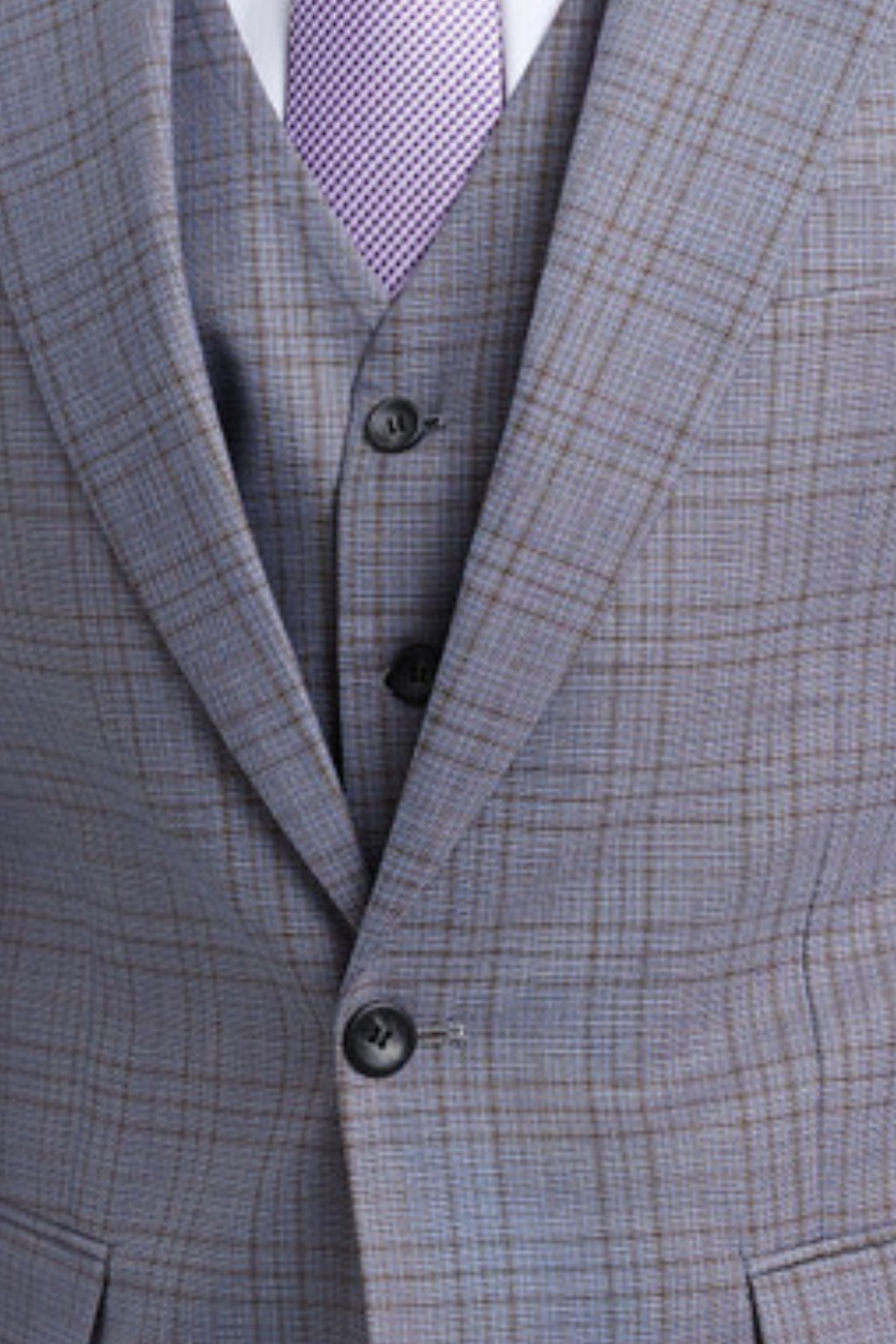 Persephone Collection: Plaid 3-Piece One-Button Closure Hybrid Fit Suit In Grey