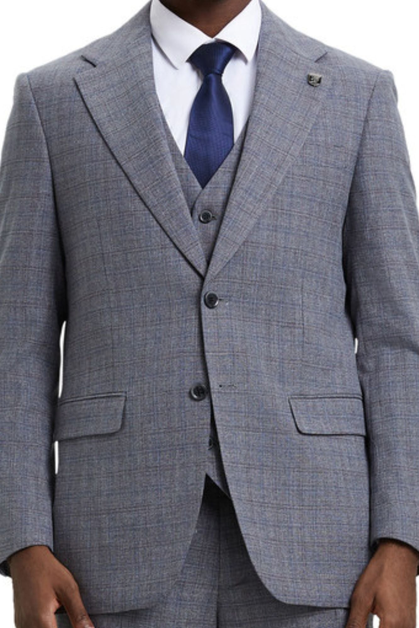 Modernistic Collection: Men's 3-Piece Slim Fit Windowpane Suit In Blue