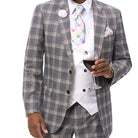 Elegant Gray Plaid 3-Piece Suit with Double-Breasted Vest